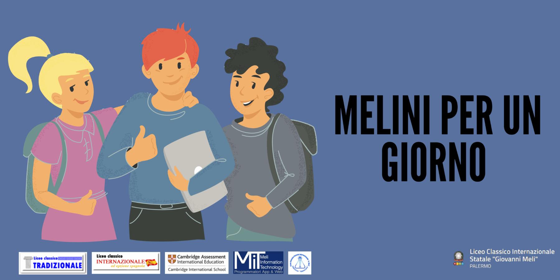 Nell’ambito delle attività di Orientamento in Ingresso, il Liceo Classico G. Meli propone l’iniziativa Melini per un Giorno. Gli alunni e le alunne delle classi terze delle Scuole Secondarie di Primo Grado avranno la possibilità di partecipare alle attività didattiche del nostro Istituto. Conosceranno docenti e studenti, visiteranno i locali della Scuola e assisteranno a lezioni e attività laboratoriali.