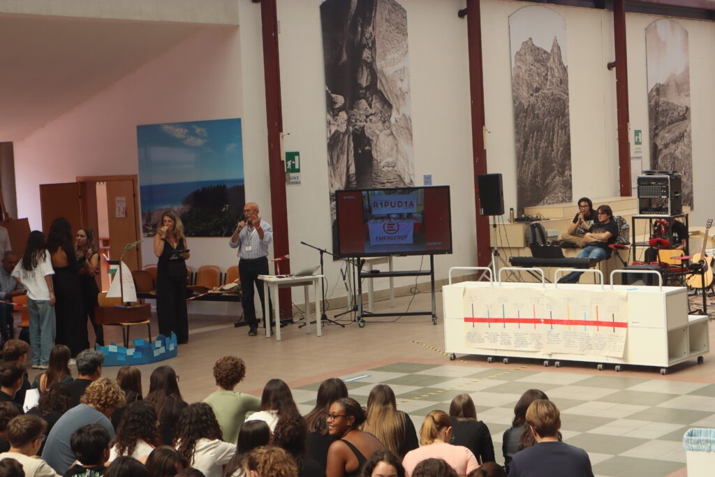 l’Agorà del Liceo Meli si è trasformata in un “luogo di luce e di ascolto sotto il segno della pace e della solidarietà”. All’interno del Progetto di Educazione Civica “Il Meli per la pace: si vis pacem, para pacem”, promosso dalle professoresse E. Macrì e G. Maggio, ha preso vita una grande manifestazione che ha visto protagoniste quasi tutte le classi del nostro Istituto. Nelle aule sotto la guida dei docenti erano stati attivati percorsi di conoscenza e riflessione profonda sulla guerra e sulla pace, si era parlato di popoli lacerati, di confini invisibili e di ferite antiche — con particolare attenzione al conflitto israelo-palestinese. Su questi temi sofferti gli studenti hanno scelto di ascoltarsi e tenersi per mano, con occhi aperti e cuore acceso. In Agorà sono stati osservati due minuti di silenzio in ricordo delle vittime di tutte le guerre e del massacro di civili nella striscia di Gaza. E sono nati gesti d’arte: parole, poesie, disegni, canzoni, video e scene di teatro. Ogni classe ha dato forma alla propria visione, trasformando lo studio in emozione e l’emozione in creazione. Perché la poesia è resistenza. È il coraggio di dire pace quando tutto intorno grida guerra. È il miracolo di trasformare la morte in speranza, il silenzio in racconto, l’assenza in una luce che non si spegne.